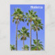 Photograph of tall palm trees against blue sky, taken on the Spanish island of Majorca in the Mediterranean Sea in Europe.