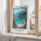Welcome to the sun-kissed shores of Mallorca, where azure waters gently lap against golden sands, inviting you to indulge in the Mediterranean's embrace. This travel poster captures the essence of Mallorca, a jewel of the Balearic Islands renowned for its breathtaking landscapes and vibrant culture.