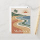 Discover the charm of Mallorca with this beautifully crafted vintage-style postcard. Featuring a minimalistic design, it showcases smooth, abstract lines depicting the serene coastline, sandy beaches, and gentle sea waves. The soft pastel color palette of sand beige, light blue, coral, and sea green evokes a warm and calming Mediterranean vibe. A stylized silhouette of a palm tree adds a touch of tropical elegance, while a simple half-circle sun with delicate rays completes the composition. Printed on subtly textured paper, this postcard is perfect for travel enthusiasts or as a keepsake of your sunny Mallorca adventures