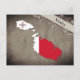 Postcard with an outline of Malta, colored in the design of the national flag.