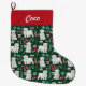 Perfect! Exactly what I ordered! I uploaded a picture of my blue chow, and the screen print was incredible. the back side of the stocking was the red and black checkered print. my puppy's name was also printed on the cuff of the stocking. PERFECT! Highly recommend this product! My puppy's name was screen printed onto the cuff of the stocking, the font was perfect!