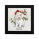 The image on the lid of this cute Holiday gift box is of an adorable little Maltese Dog wearing a red and white Santa Claus hat. Behind him is a sprig of holly and red berries. Tiny gold confetti on a pale silver background gives a bit of glitter to the design. Your name or other custom text is in black at the bottom. Be sure to see the matching products, including ornaments, in our store.