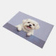 The soft pastel lavender-blue background adds a delicate and calming touch, perfect for welcoming entryways. Designed with extra space at the top and bottom, it allows easy personalization with names, welcome messages, or custom text—making it ideal for unique dog-themed doormats and thoughtful gifts.