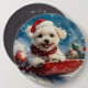 Maltese Dog in Sledge Let it Snow Christmas Button