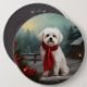 Maltese Dog in Snow Christmas Button