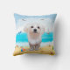 A maltese dog sitting on beach is a perfect gift idea for someone who love this dog breed.