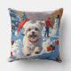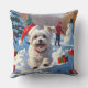 Maltese Dog Running in Snow with Christmas Hat Throw Pillow