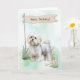 Delicate yet full of personality, this Maltese birthday card captures the charm of this fluffy, white companion. The illustrated pup sits against a soft watercolor outdoor backdrop, its silky coat flowing in the breeze. A rustic flag-style banner adds a festive touch, making this the perfect birthday greeting for Maltese lovers!