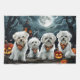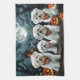 Unleash the spooky spirit with this eerie Halloween design featuring a pack of dogs under a dark, moonlit sky, surrounded by flying bats and glowing pumpkins. Perfect for those who love a touch of frightful fun with their furry friends!