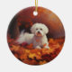 Maltese in Autumn Leaves Fall Inspire Ceramic Ornament