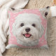 Maltese poodle dog pattern vector illustration. Cute white Maltese face on pink background