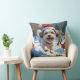 Malti Tzu Running in Snow with Christmas Hat Throw Pillow