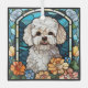 Cute Maltipoo dog ornament in a stained glass window mode.