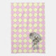 Maltipoo Puppy on Pink Checked Pattern Towel