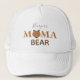 A Mama Bear hat for a mother with the customized name of her child. This hat is white and brown with the word "Mama" including a bear face illustration as the second letter of the word. This hat can easily be worn on any day and it is also part of a bear first birthday party collection. It does double duty. It’s also easy to customize. Simply, add your child’s name add this hat to your cart, then let everyone know who’s Mama Bear you are!