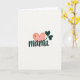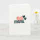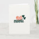 This card features the word “mama” centered on a creamy off-white background, with a tender, affectionate feel built right into the shapes around it 💚. The lettering is smooth and flowing in a deep, muted teal, giving the word a gentle presence. A large peach heart sits behind the left side of the word, as if it’s leaning in to cradle the letters like a quiet hug. Inside that heart, a smaller orange heart adds a sweet, close-to-the-chest detail that reads like a shared bond. A three-leaf clover in matching teal peeks out from behind the final “a,” tying the design to St. Patrick’s Day with a soft nod to luck ☘️. The text sits slightly in front of the heart shapes, and the teal color repeats in the clover to keep everything visually connected. Subtle texture in the teal, peach, and orange areas makes the hearts and clover look lightly painted, with the shamrock’s rounded leaves fanning out just to the right of the word.