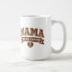 This coffee mug is great for Moms who need caffeine first, before they carry out other tasks for the day. The word "MAMA" is printed in large, "collegiate" style outline text in a coffee brown color, with a brown banner that says "NEEDS COFFEE." Underneath, there's a heart with a coffee bean in it. This humorous mug might make people smile, as you pour your morning java or evening cuppa. The design is the same on both sides.