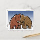 This beautiful postcard shows two furry cartoon mammoths cuddling happily together. Great to express old friendship, love or hairyness!