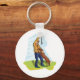 A man and his dog out playing catch with a stick. This design looks really effective on these Keychain