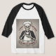 This is a raglan-style T-shirt featuring a humorous graphic design. The design showcases a skeleton wearing a chef’s hat and apron, holding a cup of coffee.