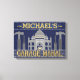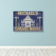 This funny, personalized design is perfect for decorating your man cave. It says, "[Your Name] Garage Mahal" and shows an outline of the Taj Mahal with hammers, screwdrivers and a little car that looks like it's parked in the middle. Easily add your name to the top. The colors are blue, gray and a golden yellow.