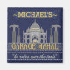 This funny, personalized design is perfect for decorating your man cave. It says, "[Your Name] Garage Mahal" and shows an outline of the Taj Mahal with hammers, screwdrivers and a little car that looks like it's parked in the middle. Easily add your name to the top. The colors are blue, gray and a golden yellow.