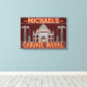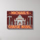 This funny, personalized wall canvas is perfect for decorating your man cave. It says, "[Your Name] Garage Mahal" and shows an outline of the Taj Mahal with hammers, screwdrivers and a little car that looks like it's parked in the middle. Easily add your name to the top. The colors are red, gray and bright orange.