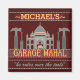 This funny, personalized square magnet is perfect for decorating your man cave fridge. It says, "[Your Name] Garage Mahal" and shows an outline of the Taj Mahal with hammers, screwdrivers and a little car that looks like it's parked in the middle. Easily add your name to the top. The line "he rules over the tools" can also be altered. The colors are red, gray and bright orange.