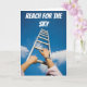 Man climbing a ladder - title reach for the sky - Folded Greeting Card - themes of ambition success career