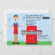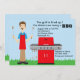 This is the perfect invitation to start that barbecue off right. This invite is set on a light blue sky background with grass along the bottom. There is a man standing with cooking utensils in each hand and he is wearing a red cooking apron. There is a red gas grill nest to him. Adorable for any party! ©craftyclip