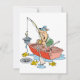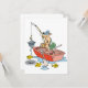 Fishing is a wonderful activity to be involved in. Show that with this cool design of a man fishing from a boat. He looks to be having an interesting time fishing. This design is done in a cartoon format. The man is in the boat with his fishing rod over the side. There is 3 fish around the boat out of water. This man fishing looks great on these invitations