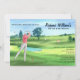 Celebrate the big 5-0 with this fun and stylish golf-themed 50th birthday invitation. The design features a beautiful watercolor illustration of a golf course with a golfer in mid-swing, playfully putting toward the number 50. The humorous quote “Swinging Into My Fifties” appears in an elegant script font, while the party details are presented in a classic serif font for a clean and polished look. Perfect for golf lovers, this invitation blends humor and sophistication to set the tone for a memorable celebration.