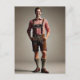 The man is dressed in classic Bavarian attire, featuring brown leather Lederhosen with intricate embroidery on the suspenders and pant legs. This is a traditional costume of Germany and Austria. His red-and-white checkered shirt is neatly tucked into the Lederhosen, with the sleeves rolled up for a relaxed yet traditional appearance. He is wearing dark leather shoes paired with knee-high socks that add a finishing touch to the outfit. The ensemble exudes cultural authenticity and charm, highlighted by his confident stance and warm smile.