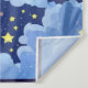 Tapestry in a playful, mystical, serene, man-in-the-moon, glowing against a background of stars and nocturnal clouds