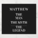 A classic black background. Text: The Man, The Myth, The Legend. Personalize and add his name
