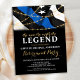 Thin Blue Line Police Retirement Invitations. Celebrate years of dedicated service, your police officer retirement and invite friends and family to your law enforcement party with this modern Thin Blue Line Flag with Gold String Lights Police Retirement Invitation. USA American flag design in Police Flag colors, modern black blue white and gold design. See our collection for matching police retirement gifts, police retirement party favors, and supplies. COPYRIGHT © 2021 Judy Burrows, Black Dog Art - All Rights Reserved. Man Myth Legend Thin Blue Line Police Retirement Invitation Postcard