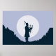 Man playing bagpipes in the moonlight poster