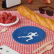 Man Running Runners Silhouette on Blue Background Paper Plates