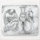 Facsimile copy of Ms Fr 19093 fol.23v Man seated, Knight mounting his horse | by Villard de Honnecourt | Art Location: Bibliotheque Nationale, Paris, France | French Artist | Image Collection Number: XIR200390