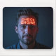 A Caucasian man with a glowing neon "check engine" sign on his forehead