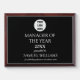 Manager of the year award. Modern, elegant, black and white, company logo, employee recognition award plaque. Perfect for employee.