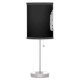 I have purchased other similar lamps. I use them as extra light for guest's. They are inexpensive, easy to assemble and good height for reading. I like that there are many pre-made shades to choose from and that, like this one, you can use your own art.