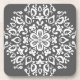 This white mandala sits on a dark grey background. The colors are neutral and reserved and will fit in anywhere. Part of the Pras Mandala Collection.