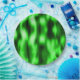 Manchas em tonalidades de verde e escuro com um efeito parecido com pastilhas de vidro que causaram alguma percepção de 'brilho de lâmpada' sob algum vidro verde....