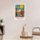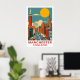 Celebrate the vibrant energy of the North West with this stunning Manchester, England Travel Art Poster! Rendered in a bold, graphic style, this piece features a detailed city street with iconic architecture, including a prominent red tower and a historic church.