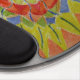 The plastic backing is nice and sturdy. The grippy pads underneath keep the mouse pad where I put it on my table. The pad the mouse sits on is cut well to fit the backing. The wrist pad is perfectly soft, supportive, and thick. I'm left-handed, and this mouse pad works just as well for me as it does for my right-handed friends. I'm the designer of HippieClecticHope products. I'm blown away by how well my intricate fractals turn out on the tangible items in the Zazzle Marketplace. This particular mouse pad ***appears*** like a 3D object... A mathematically-engineered rainbow black opal, inlaid under transparent fabric...