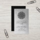 Elegant vertical business card featuring a detailed black mandala on faux silver texture. A refined look for wellness experts, coaches, and creatives.