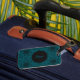 This cool luggage tag boasts a vibrant teal background with a sleek black mandala pattern and a customizable circle for your name! It'll make your bags stand out in style.