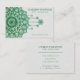 Mandala - Double-sided Business Card. Background has mottled effect with a lucious contrasting green image and font.