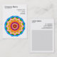 A business card template with an attractive Mandala motif on the front. Company name, business type and address on the front with name, job title, telephony, web and email addresses on the back, with a similar layout except there is a square pale gray area intended as a useful area for writing notes instead of the mandala motif. This card can also be further customized.